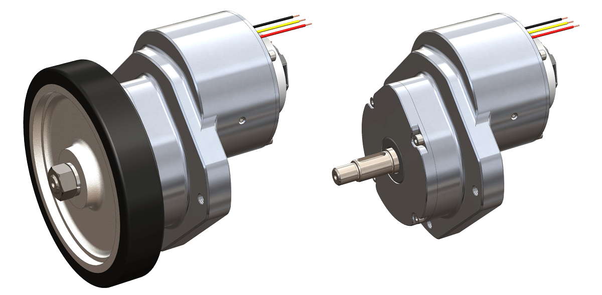 The LIGHTNING 100 is a light duty brushless wheel drive used in autonomous mobile applications. The single stage design fully incorporates the brushless motor into the gearbox housing making a compact, powerful, and durable drive system. It is optimized for use as a wheel drive with axle bearings and options available for encoders on the axle and motor shafts. Various parking brake options are also offered. We can also supply this drive with a wheel.